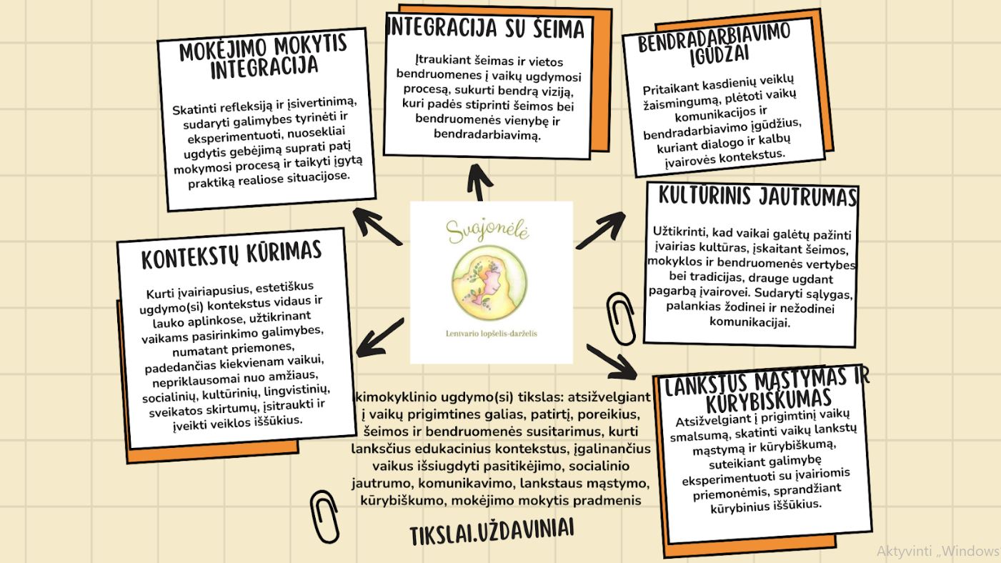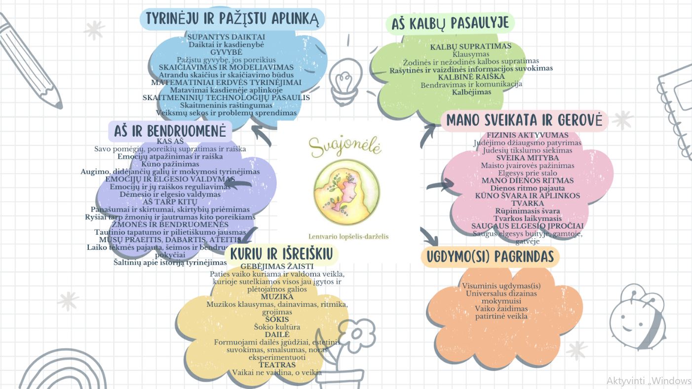 Visos ugdymosi sritys yra lygiavertės, plėtojamos integraliai, nes yra glaudžiai