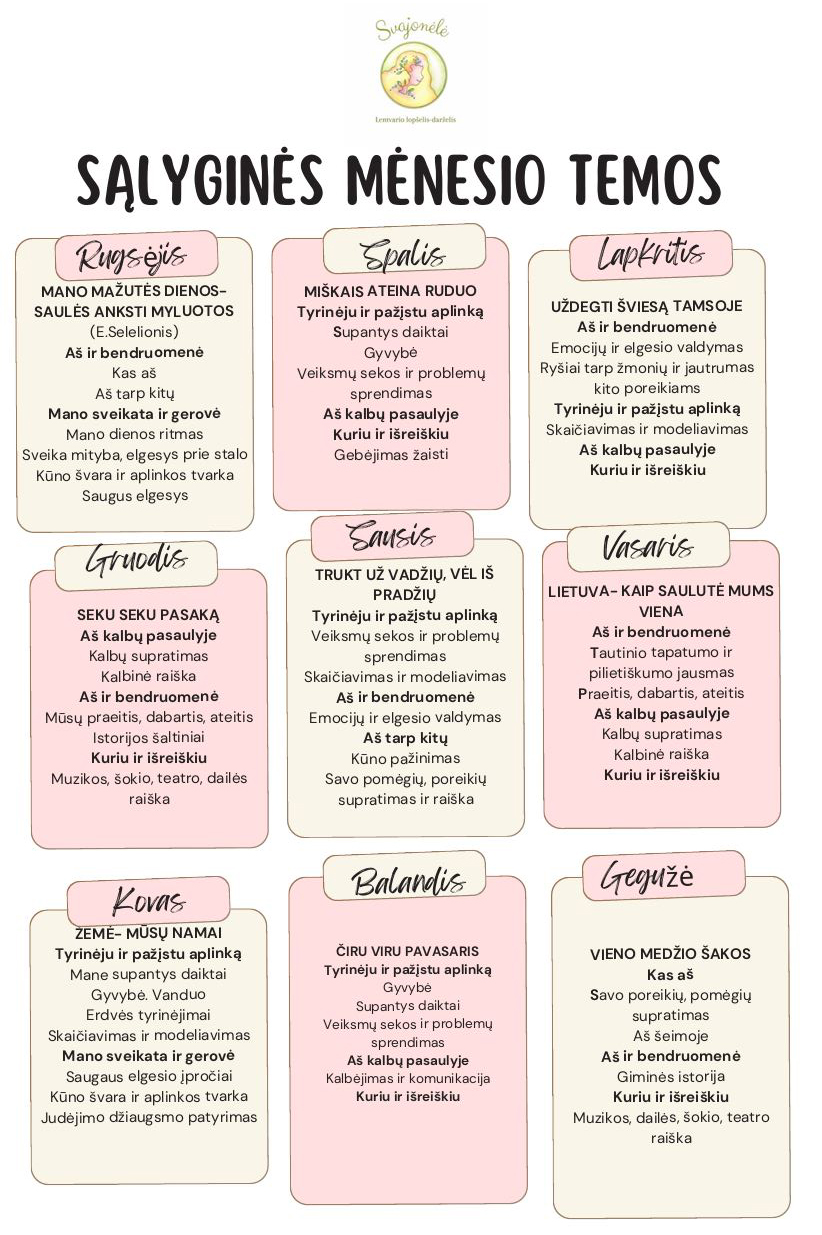 Temos ugdomosioms veikloms yra sąlyginės, atsižvelgiama į vaikų inicijuojamas idėjas